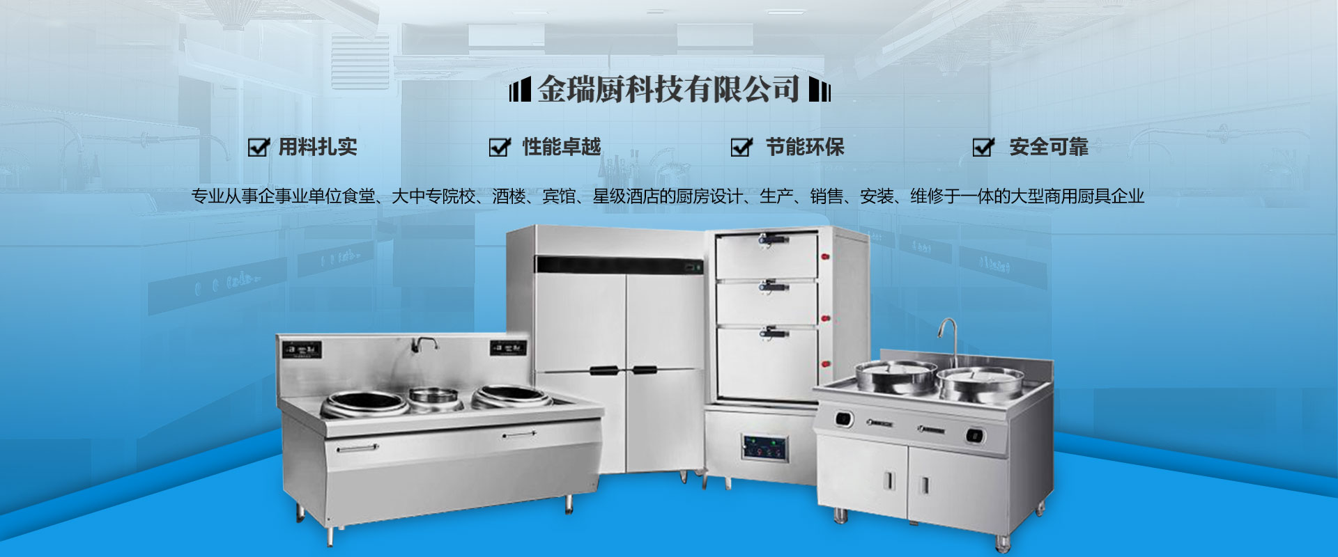 四川金瑞廚科技有限公司是一家專業(yè)從事企事業(yè)單位食堂、大中專院校、酒樓、賓館、星級(jí)酒店的廚房設(shè)計(jì)、生產(chǎn)、銷(xiāo)售、安裝、維修于一體的大型商用廚具企業(yè),。公司擁有一批經(jīng)過(guò)專業(yè)培訓(xùn)的高素質(zhì)管理人員及工程技術(shù)人員,團(tuán)隊(duì)分工實(shí)施工程策劃、產(chǎn)品研發(fā)、設(shè)計(jì)、制造、檢驗(yàn)、安裝、售后服務(wù)等方面的工作,擁有從設(shè)計(jì)、安裝、調(diào)試到提供完善迅速的售后服務(wù)一體化的專業(yè)水準(zhǔn)。公司主要銷(xiāo)售廚房設(shè)備、不銹鋼制品、酒店設(shè)備、食品加工設(shè)備、制冷設(shè)備、通風(fēng)設(shè)備、消音設(shè)備、防水處理設(shè)備等。